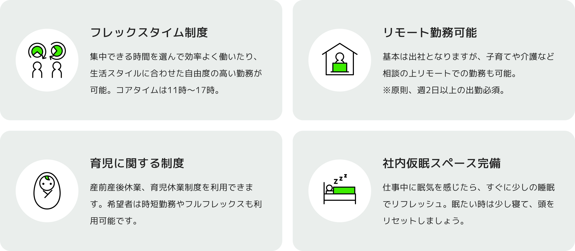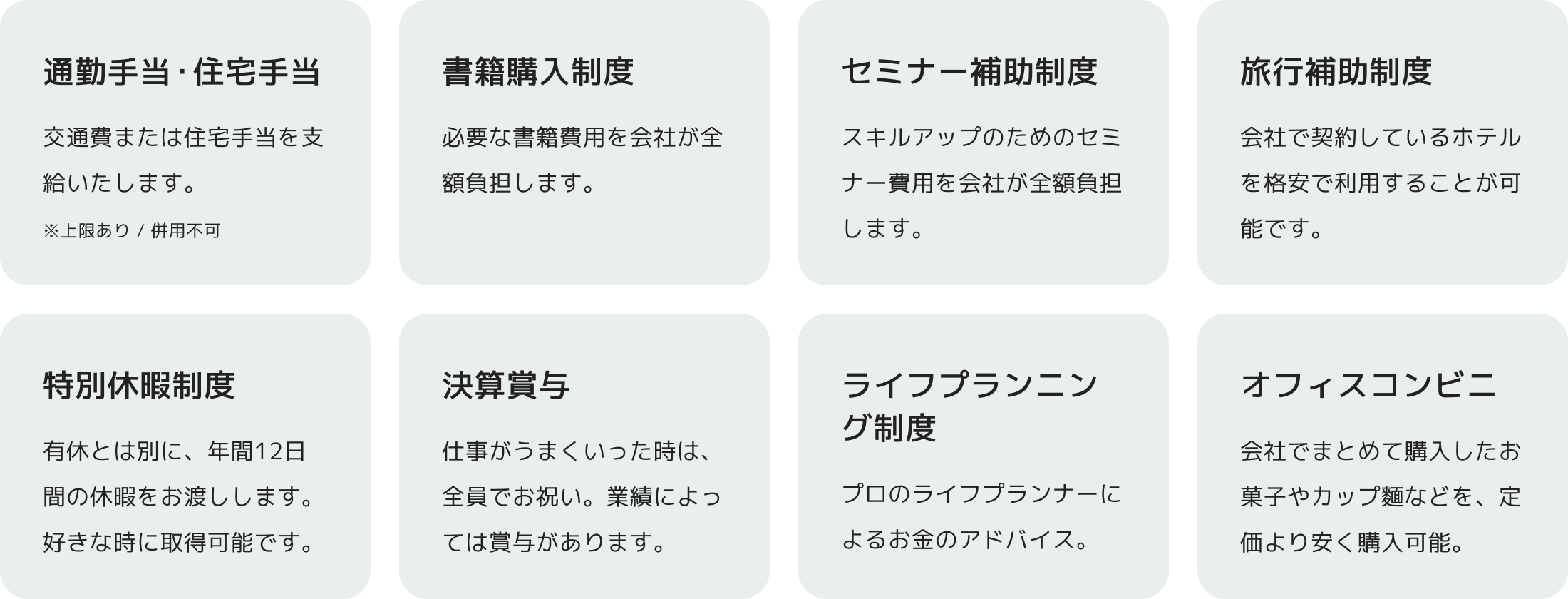 ※雇用形態や業務内容によっては適応されないものも含まれます。